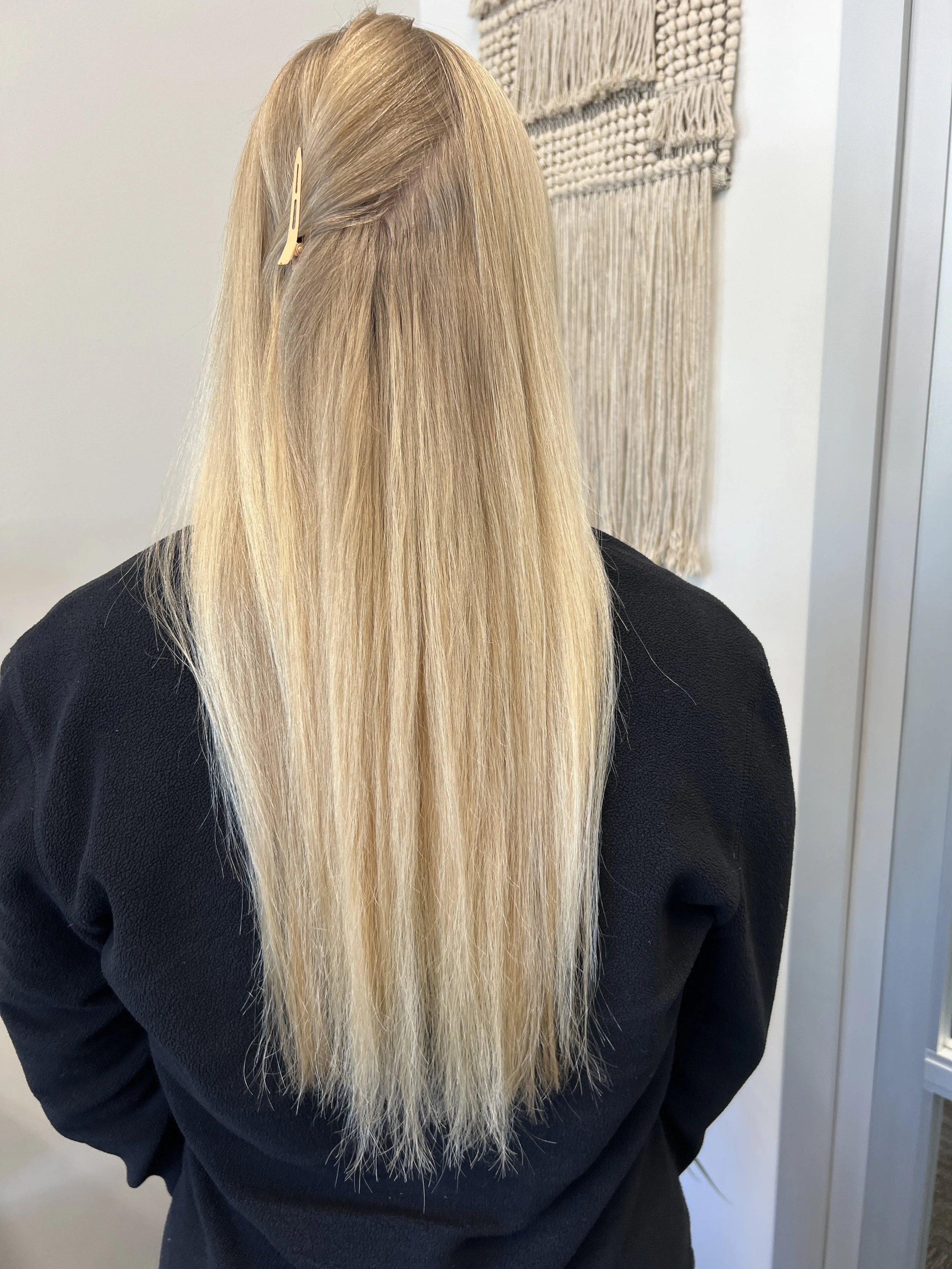 K-Tip extensions are my favorite method because they allow me complete creative freedom. I can place each bond exactly where it needs to be for the perfect blend, natural movement, and long-term comfort. The result is hair that looks and behaves like your own — no bulk, no stiffness, no high-maintenance touch-ups.